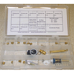 This handy tuning kit contains the useful items you need to fine tune your Rochester Quadrajet to lower elapsed times at the track and also better fuel economy on the street. Save $$$ with this kit, plus it all comes neatly organized in a sturdy clear plastic case. Tuning your Quadrajet carburetor has never been so easy!